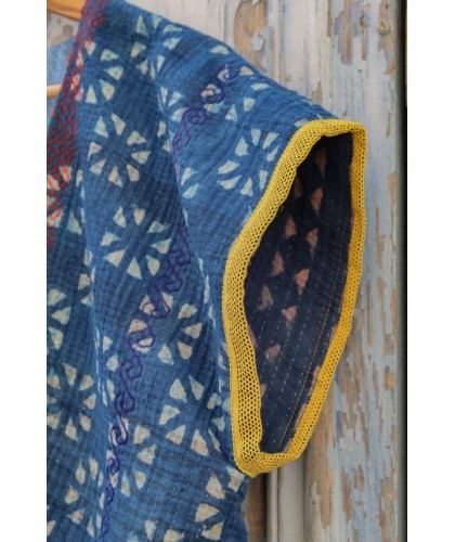 Le tissu est ancien est a un aspect vécu, il peut présenter des tâches ainsi que des parties usées, cette usure est voulu et gage de son authenticité.