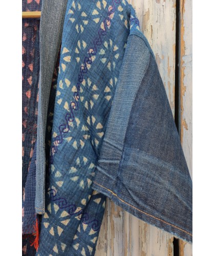 Le tissu est ancien est a un aspect vécu, il peut présenter des tâches ainsi que des parties usées, cette usure est voulu et gage de son authenticité.